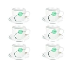 Die kleine Porzellantasse fasst 80 ml (max. 110 ml) und misst oben Ø 6.5 cm. Bogenförmige Flächen flachen die Kaffeetasse seitlich ab, wodurch die besonders schöne Form entsteht. Nach unten hin verjüngend, endet die knapp 5.5 cm hohe Tasse in einem Boden von Ø 3.5 cm und passt somit perfekt auf den, Ø 4 cm großen Spiegel der Untertasse.