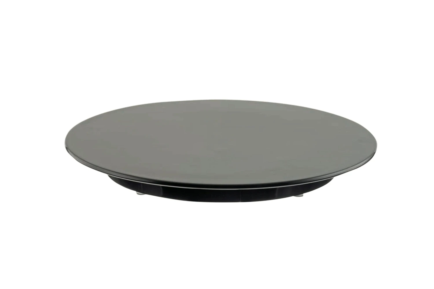 Schwarze Tortenplatte aus Melamin mit Anti-Rutsch-FĂĽĂźen.